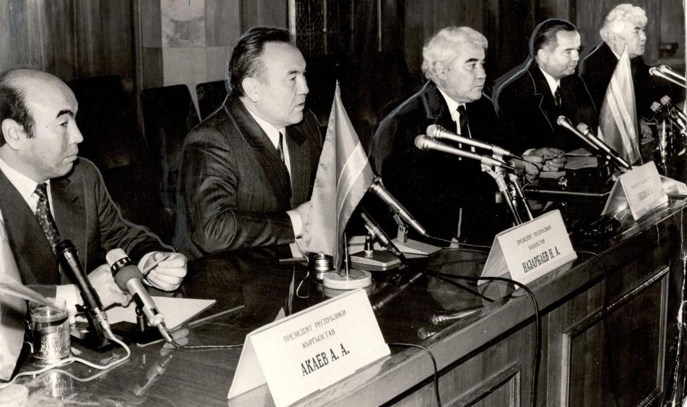 Islam Karimov (center) assumed the role of president of newly independent Uzbekistan after serving as the First Secretary of the Uzbekistan Communist Party and as a Politburo member of the Soviet Union. He quickly established an authoritarian dictatorship and ruled as president until his death in 2016. Creative Commons License 4. Photo by EgemenMedia.